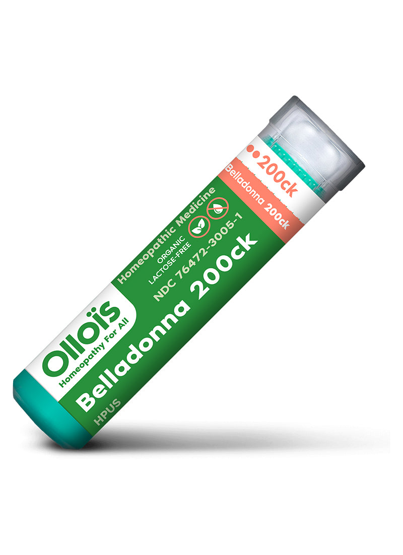 At Olloïs, our homeopathic belladonna remedy contains just one active ingredient: diluted belladonna flower. With no added preservatives or flavorings and a certified organic, vegan, gluten free and lactose free pellets, you know you’re getting nothing but what your body needs.