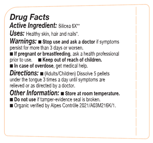 - Silicea : Traditionally used to help promote healthy skin, hair and nails