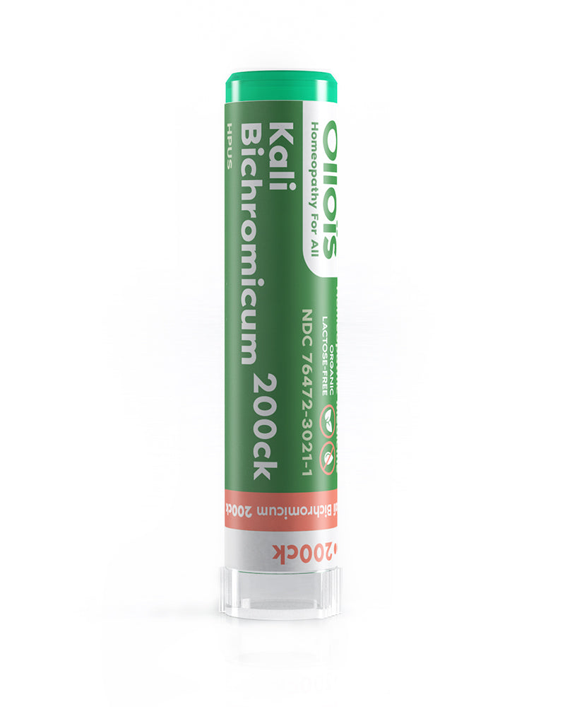 Kick that congestion and headache to the curb. Kali Bichronicum is traditionally used for mild sinus headache with nasal discharge associated with colds.* Made from natural Potassium Dichromate, this remedy is one of our mineral based and certified vegan remedies.