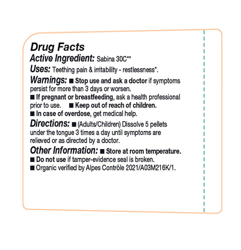 - Chamomilla 30c : Teething, irritability, and restlessness.*