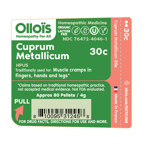 - Cuprum Metallicum 30C: muscle cramps in fingers, hands, and legs.*