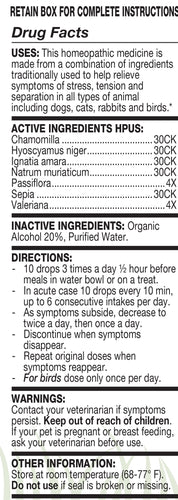 Organic oral drops formulated optimally with 7 different homeopathic remedies to address stress issues in pets. Easy to use. Safe & gentle on your pet.