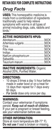 Organic oral drops formulated optimally with 5 different homeopathic remedies to address worms-related issues in pets. Easy to use. Safe & gentle on your pet.